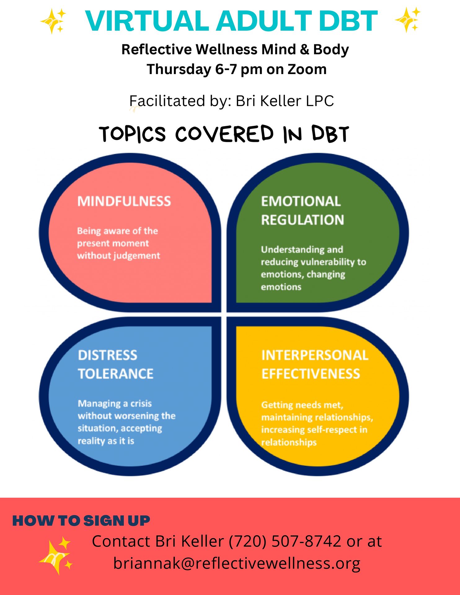 Description: Gain coping strategies on ways to manage emotions, reduce stress, setting boundaries, and how to utilize mindfulness practices. Group is facilitated by Bri Keller LPC.